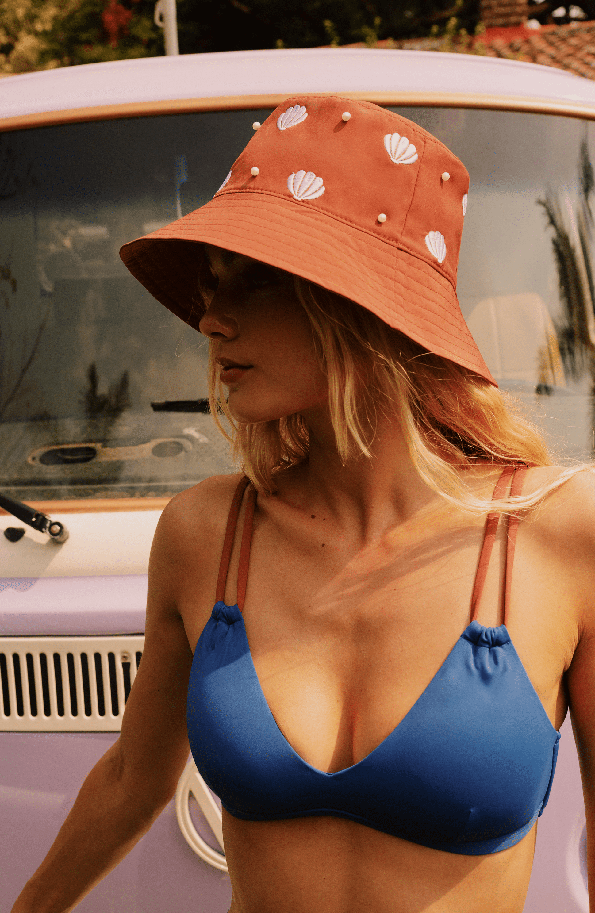 Añade un toque a tu look con este bucket hat café con conchas de Bari Swimwear. Este accesorio es ideal para combinar con tu set de playa, ofreciendo un estilo único. Con un diseño que destaca por su originalidad, este sombrero es el complemento perfecto para quienes buscan destacar con un outfit completo y coordinado durante sus días al sol.