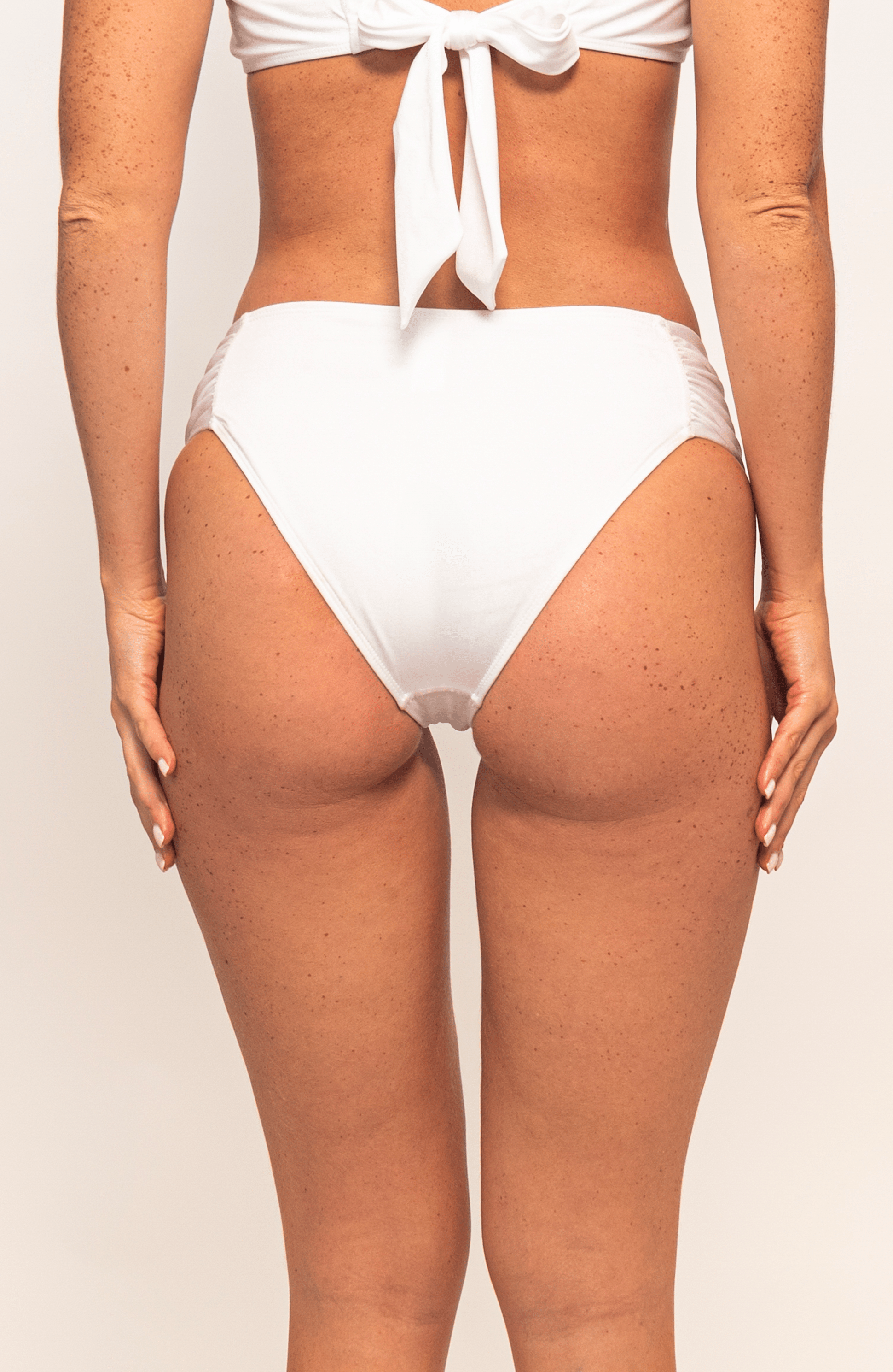 Panty blanca con plisado en los costados de Bari Swimwear.