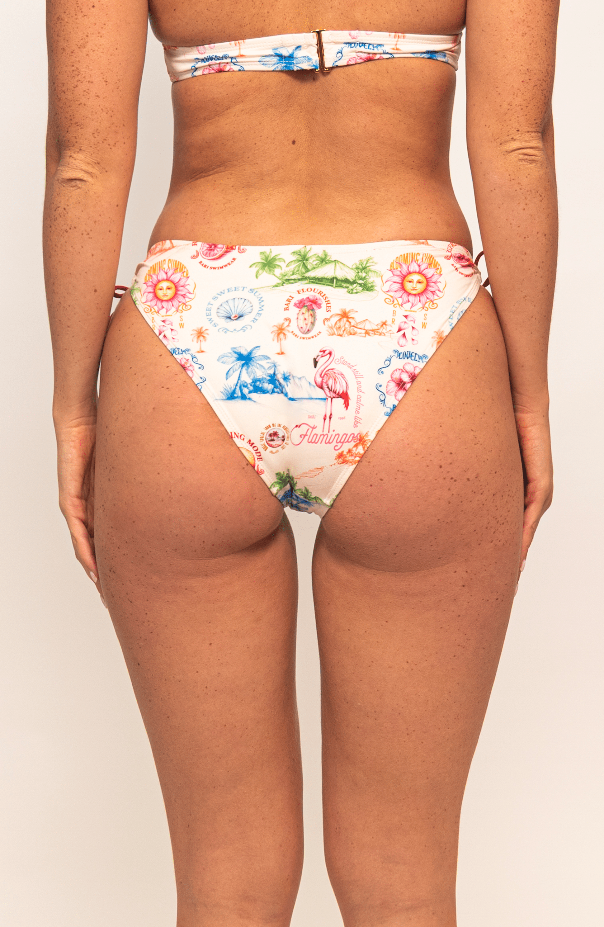 Esta panty con cobertura normal y amarres laterales es ideal para combinar con su top triangular de Bari Swimwear. Los amarres de moño permiten ajustar la panty a tu gusto.