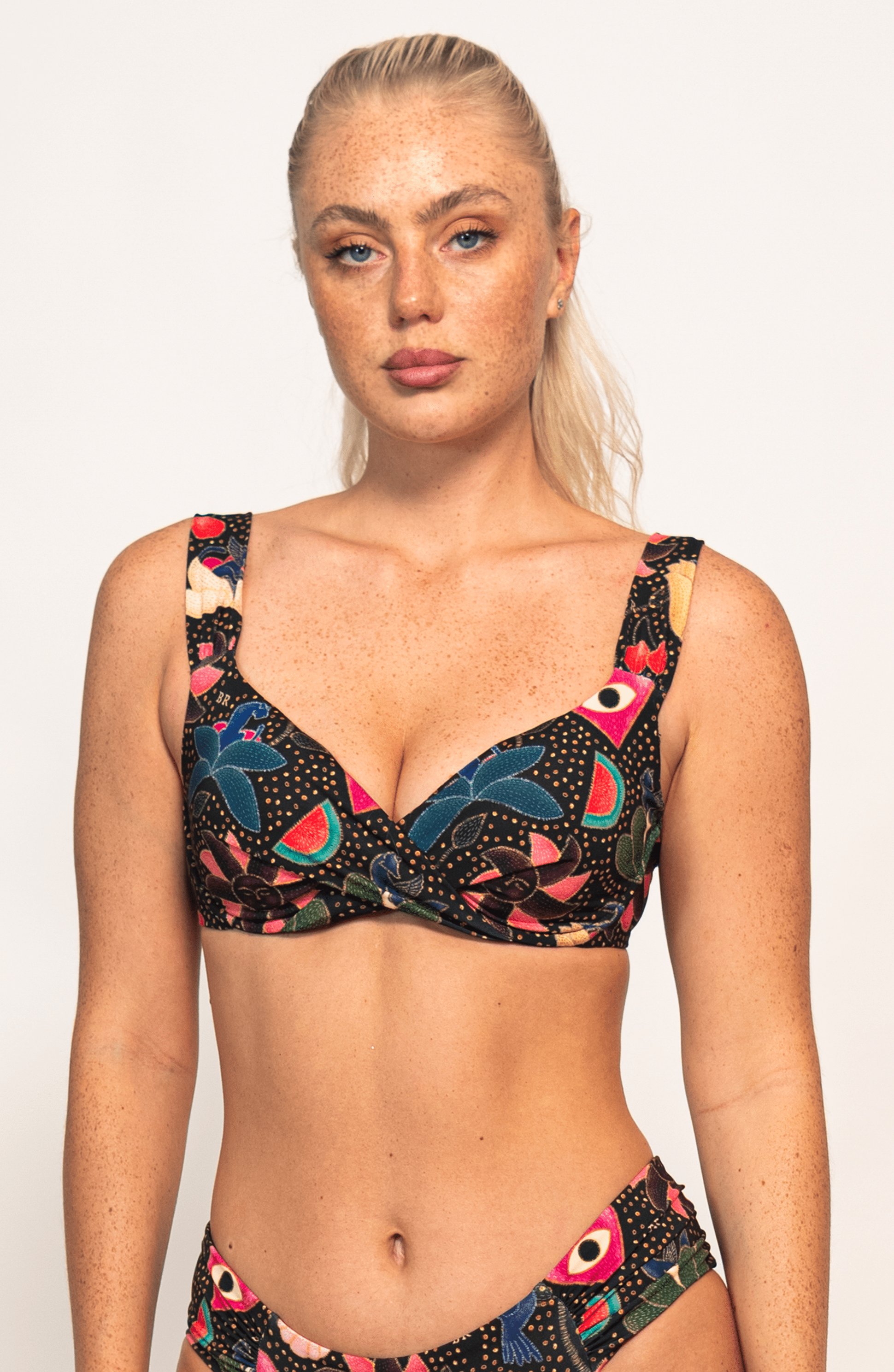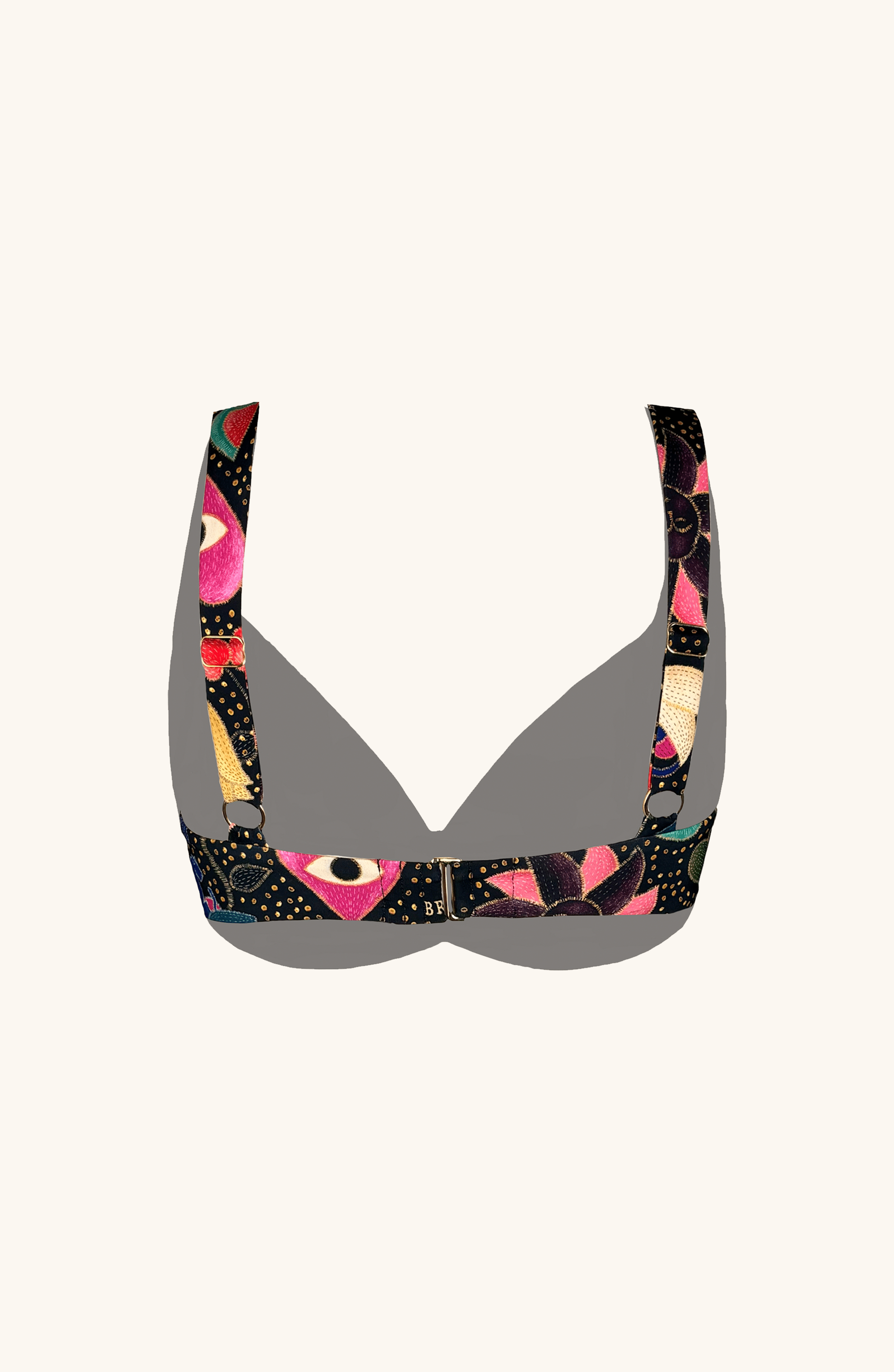 Este top realza tu silueta con copas entrelazadas y amarre de gancho en espalda. Cuenta con copas removibles y varilla de arco que brinda ajuste perfecto y comodidad durante todo el día. Ideal para la playa o la alberca, es una pieza versátil y sofisticada que nunca pasa de moda. Combínalo con la panty para un look completo. Con un certificado Oeko-Tex para seguridad en el contacto con la piel.