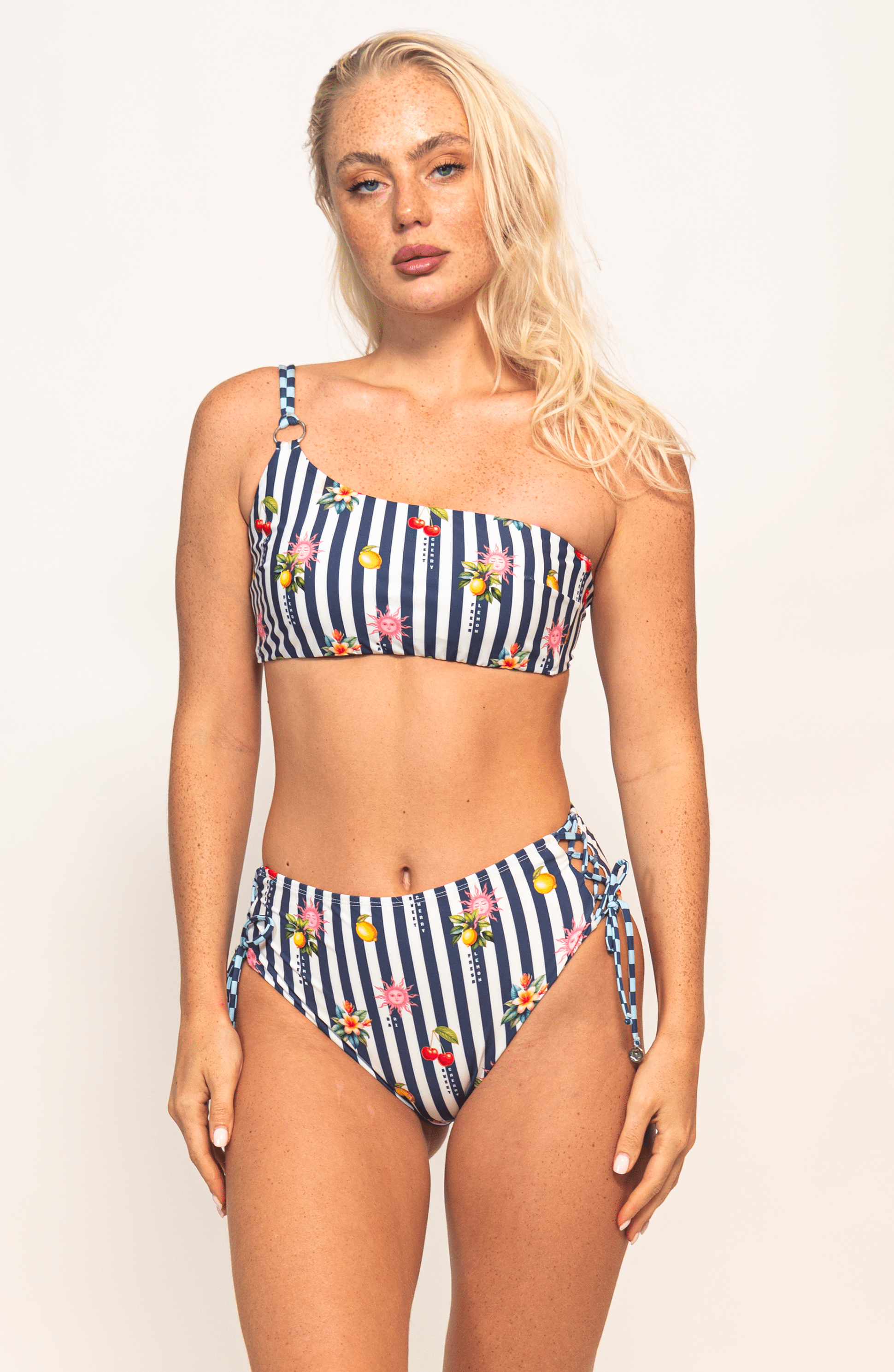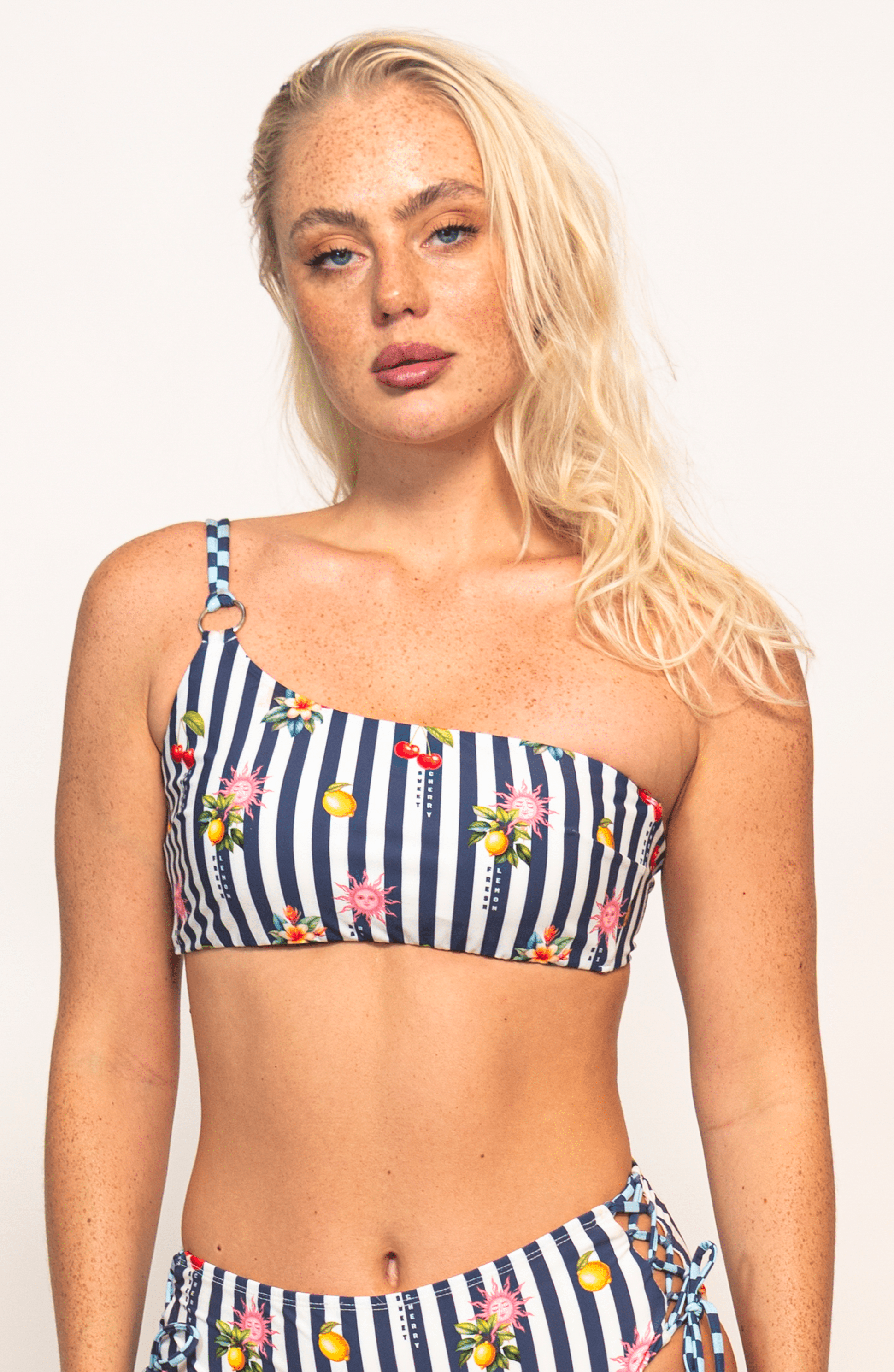 Este top de bikini de un hombro de Bari Swimwear destaca por su diseño moderno y sofisticado. Cuenta con copa removible y varilla lateral. Su tirante asimétrico con argolla y doble unión en la espalda añade un detalle estructural y elegante, mientras que el amarre en la espalda permite un ajuste personalizado y seguro. Ideal para quienes buscan un top de bikini diferente, con carácter y detalles que elevan cualquier look de playa o alberca.