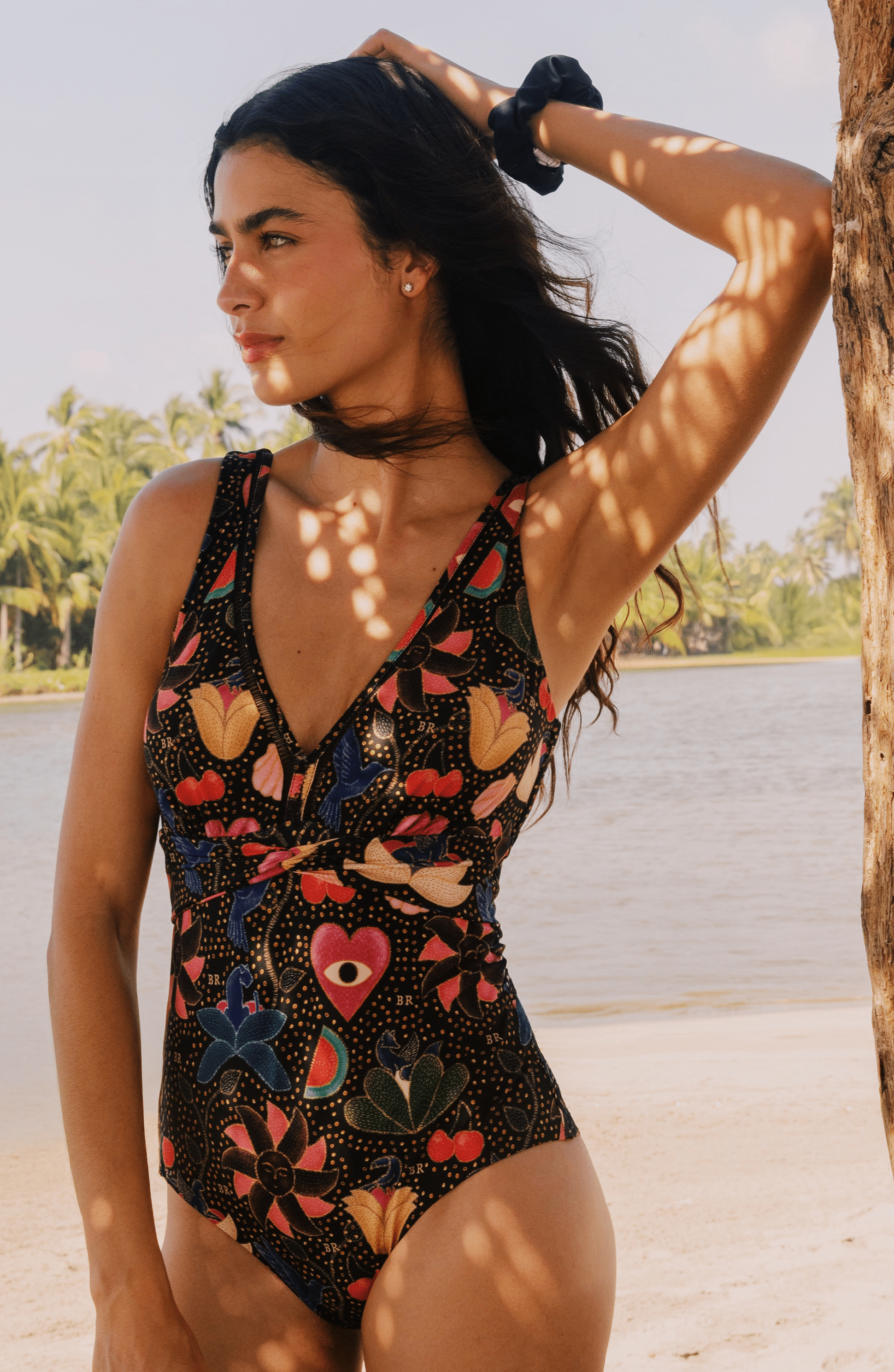 Traje de Baño Completo Control Abdominal Midnight Garden , Colección Alma Frutal