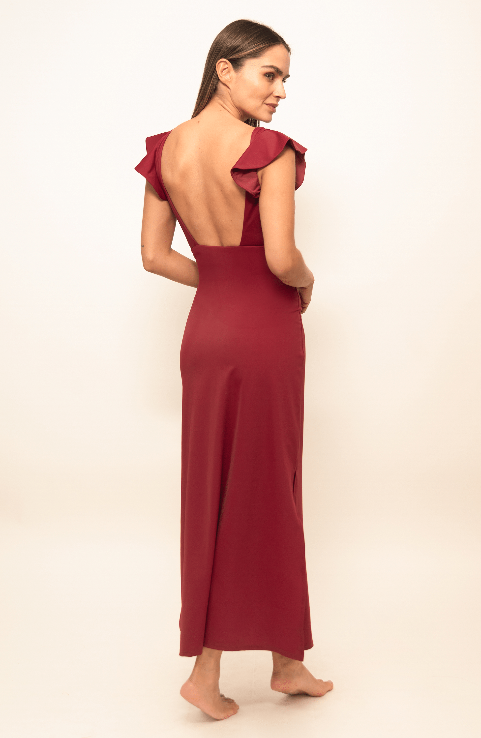 Descubre la sofisticación del vestido largo vino con mangas de Bari Swimwear, con aberturas y escote en V. Este vestido es perfecto para cualquier ocasión, desde eventos casuales hasta cenas elegantes. Su diseño versátil combina un estilo chic con un toque de originalidad, haciendo de esta prenda una elección ideal para destacar con elegancia y comodidad en cada evento.